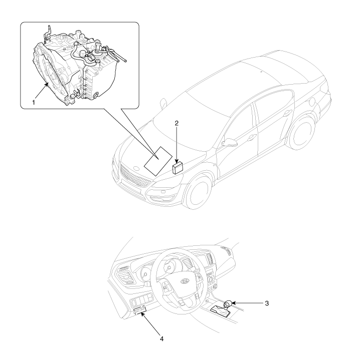 2. Датчик выходной скорости 3. Подключение электромагнитного клапана 4. Датчик температуры масла (OTS) |