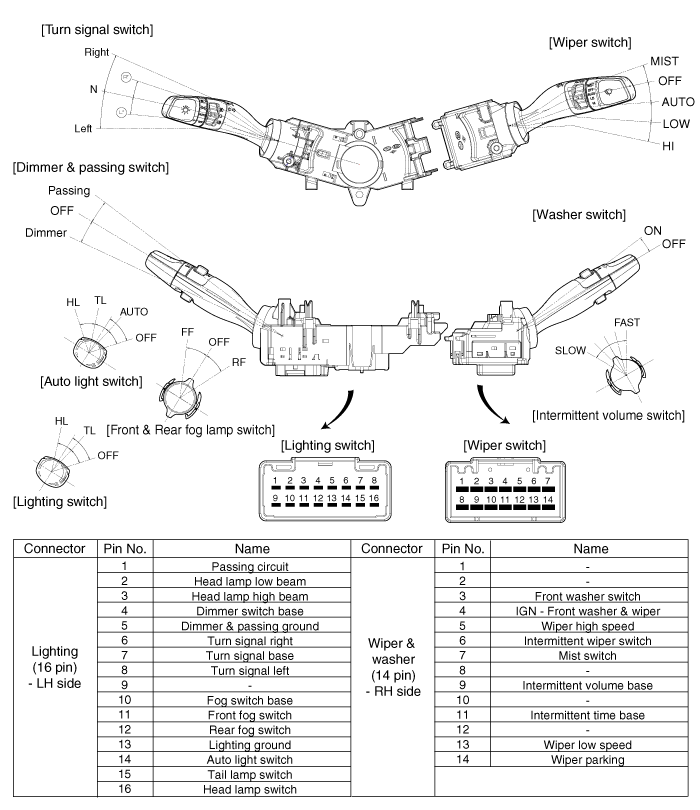Когда многофункциональный переключатель находится в каждом положении, убедитесь, что