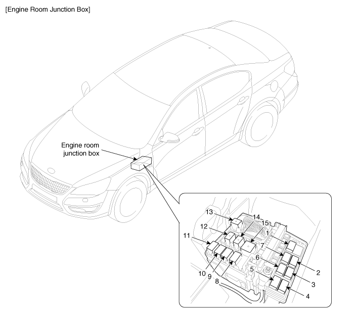 9. Реле охлаждающего поддона №2 10. Пусковое реле 11. Реле заднего обогревателя 12. Реле звукового сигнала 13. Реле АСС 14. Реле топливного насоса 15. Реле ЭБУ |