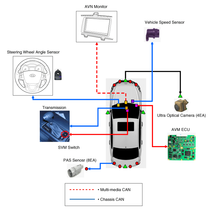 включает в себя 4 ультраоптические камеры, установленные вокруг автомобиля ...