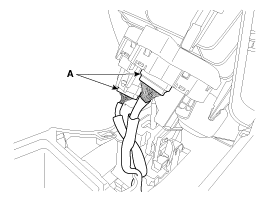 Отсоедините разъемы (А) от верхней крышки напольной консоли.
