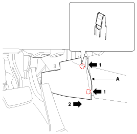 С помощью отвертки или съемника снимите боковую крышку консоли (А).