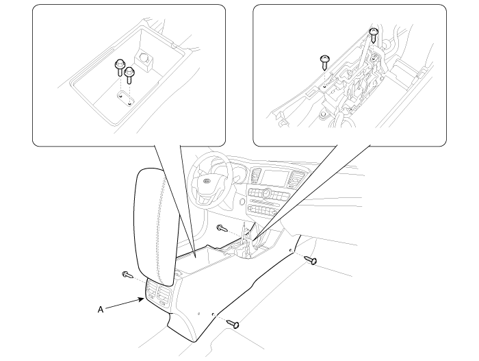Ослабив крепежные винты и болты, снимите напольную консоль в сборе (А).