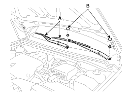Снимите крышку (В) и отверните гайки, затем снимите рычаг стеклоочистителя (А).