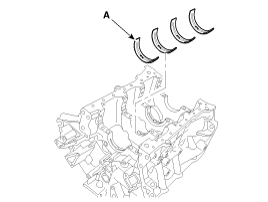 Установите 2 упорных подшипника (А) под шейку № 3 блока цилиндров так, чтобы масляные канавки были обращены наружу.