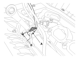 Выверните установочный болт (В) и снимите клапан с двигателя.