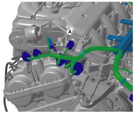 Отсоедините разъем клапана управления маслом CVVT (А).