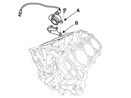 Установите крышку маслосливного отверстия (А) с новой прокладкой (В).