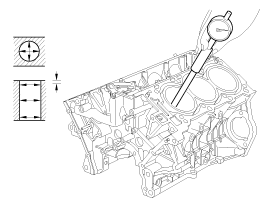 Используя калибр для измерения диаметра цилиндра, измерьте диаметр отверстия цилиндра в положении в осевом и осевом направлениях.