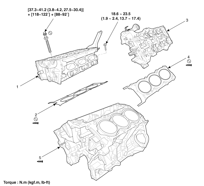 2. Правая прокладка ГБЦ 3. Левая головка блока цилиндров |