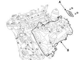 Снимите крышку левой головки блока цилиндров (В) и прокладку.