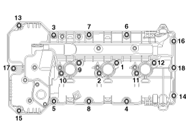 Установите болты левой крышки головки блока цилиндров следующим образом.
