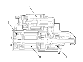Плунжер соленоида и рычаг переключения сцепления активируются, и шестерня сцепления входит в зацепление с зубчатым венцом.