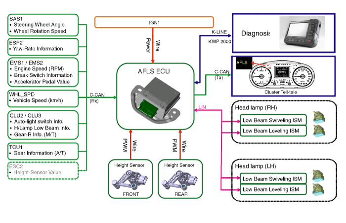 Обеспечение функции Tel-tale AFLS (отображение «AFLS» на приборной панели).