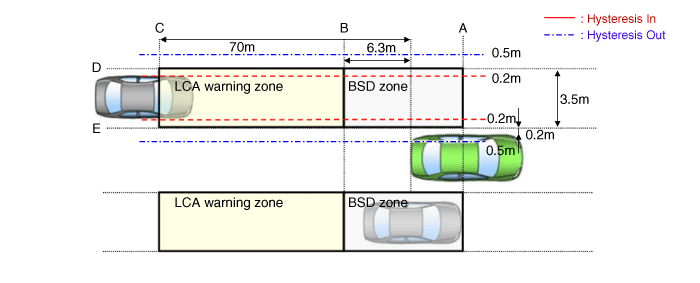 Вся часть целевого транспортного средства проходит линию E и гистерезис In.