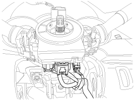 Подсоедините разъем жгута часовой пружины и разъем жгута звукового сигнала к часовой пружине.