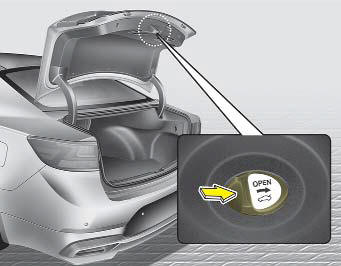Ваш автомобиль оснащен рычаг аварийного открывания багажника находится внутри багажника. Когда кто-то непреднамеренно заблокирован в багажник, багажник можно открыть перемещая рычаг в направлении стрелка и толкая ствол открыть.