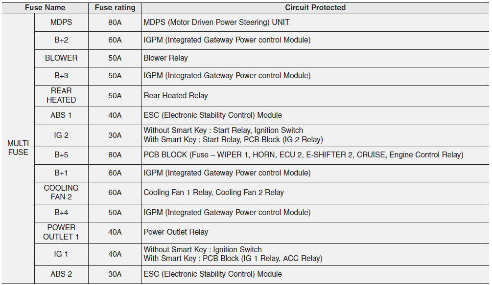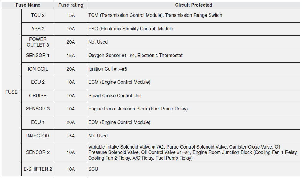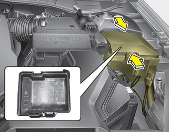 Kia Cadenza: Описание панели предохранителей/реле / Панель предохранителей в моторном отсеке