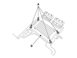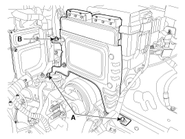 Снимите установочные болты (А) и гайку (В) кронштейна блока ЕСМ.