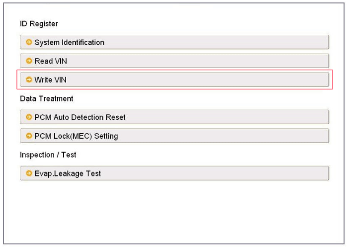 Выберите «Записать VIN» в «Регистрация удостоверения личности».