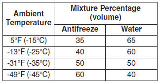 Проверьте защиту от замерзания и уровень охлаждающей жидкости не реже одного раза в год: при начало зимнего сезона, и перед поездкой в более холодный климат.