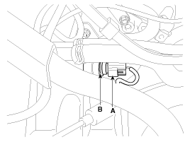 Отсоедините разъем датчика температуры охлаждающей жидкости двигателя (А).