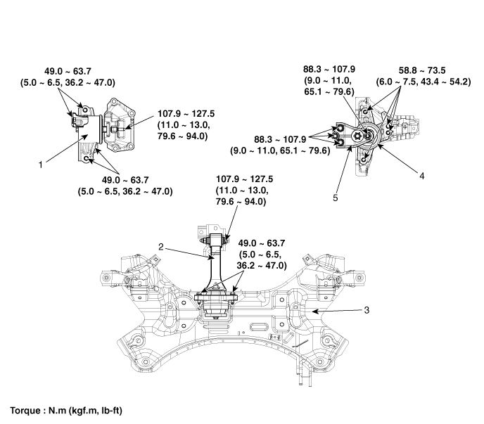 Kia Cadenza: Двигатель и трансмиссия в сборе / Расположение компонентов и компонентов крепления двигателя