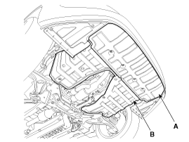 Снимите переднюю нижнюю крышку моторного отсека (A) и боковые крышки (B).
