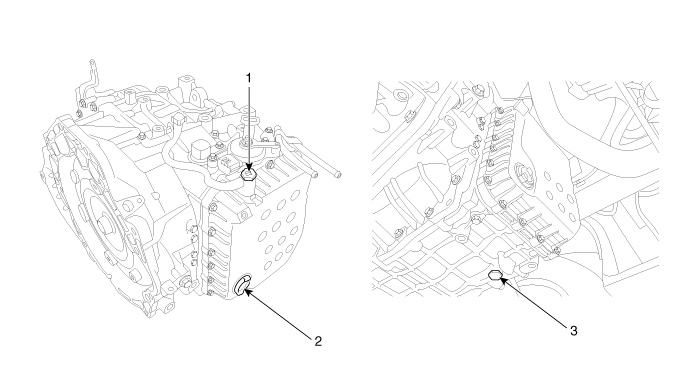 2. Пробка уровня масла 3. Пробка для слива масла |