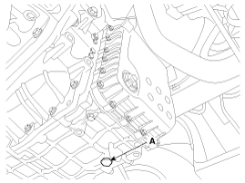 Снимите сливную пробку (А) и полностью слейте ATF. Установите на место сливную пробку.