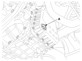 Поднимите автомобиль, затем снимите пробку уровня масла (А) с крышки блока клапанов.