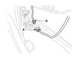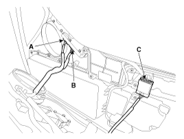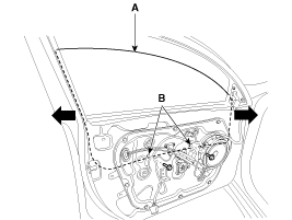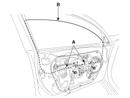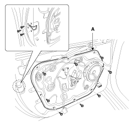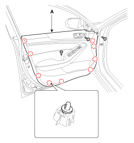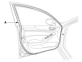 Отсоедините зажимы, затем снимите уплотнитель передней двери (A).
