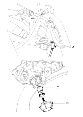 Замените переднюю противотуманную фару (С), повернув ее против часовой стрелки.