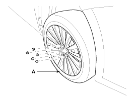 Снимите переднее колесо и шину (А) с передней ступицы.