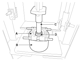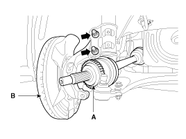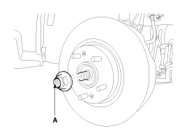 Снимите гайку уплотнения приводного вала (А) с передней ступицы, применяя тормоз.