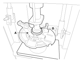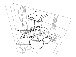 Снимите болты крепления тормозного суппорта , а затем закрепите тормозной суппорт в сборе (B) с помощью проволоки.