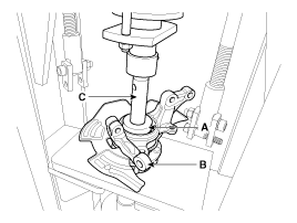 Снимите передний нижний рычаг с переднего поворотного кулака с помощью SST (0K545-A9100).