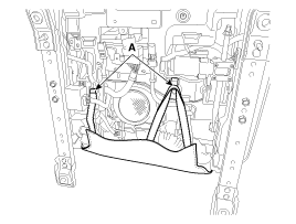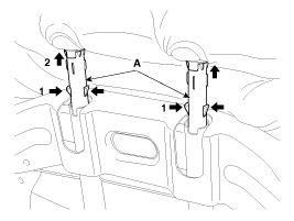 Снимите крепежный зажим задней стороны спинки заднего сиденья (А).