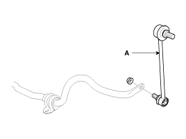 Отсоедините стойку стабилизатора (В) от передней стойки в сборе (А) после ослабления гайки.