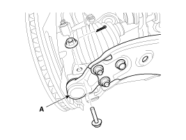 Ослабьте болт и гайку и снимите нижний рычаг (А).