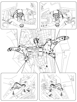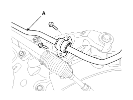 Ослабьте крепежный болт и снимите стабилизатор поперечной устойчивости (В) с подрамника (А).