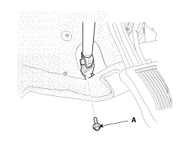 Ослабьте болт (А) и отсоедините узел универсального шарнира от шестерни рулевого механизма.