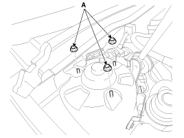 Снимите переднюю стойку в сборе и ослабьте гайки крепления стойки (А).