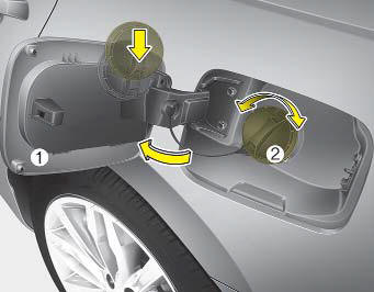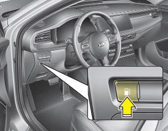 2. Чтобы открыть лючок топливного бака, нажмите кнопка открывания лючка бензобака.