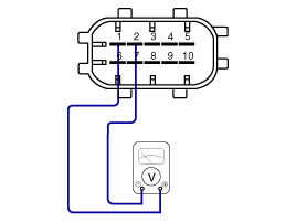 Проверьте напряжение, подаваемое на датчик давления топлива (FPS) на холостом ходу.