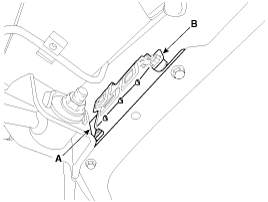 Отсоедините разъем (А) модуля управления топливным насосом, а затем снимите модуль (В) с автомобиля.