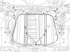 Поднимите автомобиль и поддержите топливный бак домкратом.