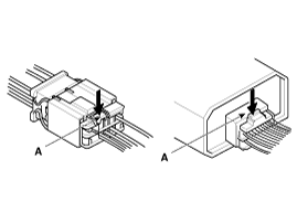 Все коннекторы имеют замки с нажимным фиксатором (A).