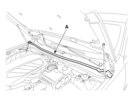 Отсоедините зажимы, затем снимите уплотнитель капота (А).