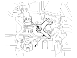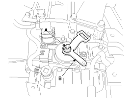 Снимите рычаг ручного управления (В) и шайбу, открутив гайку (А).